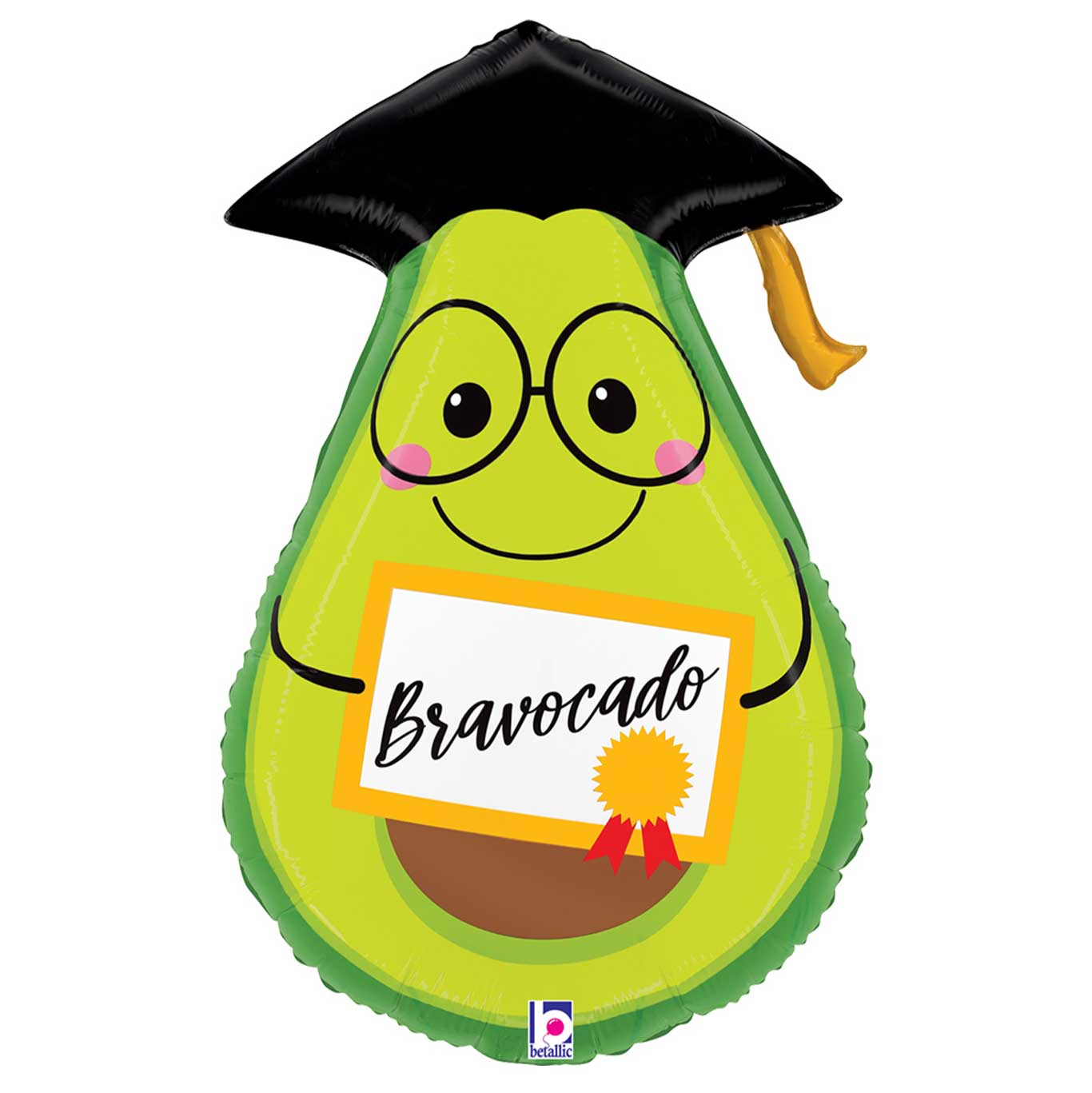 Piękny balon foliowy w kształcie uśmiechniętego Avocado z napisem Bravocado wykonany z lekkiej dobrej jakości folii firmy Grabo.