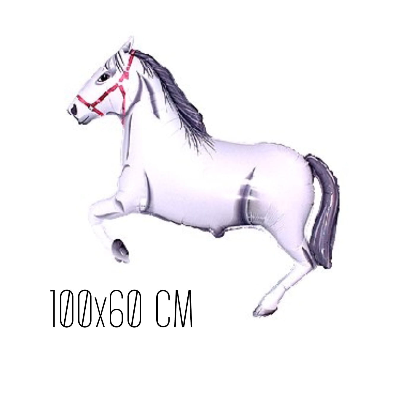 Balon foliowy w kształcie Białego Konia o wymiarach ok. 100x60cm. Dostępny w 2 wariantach do wyboru: bez helu i napełniony helem.