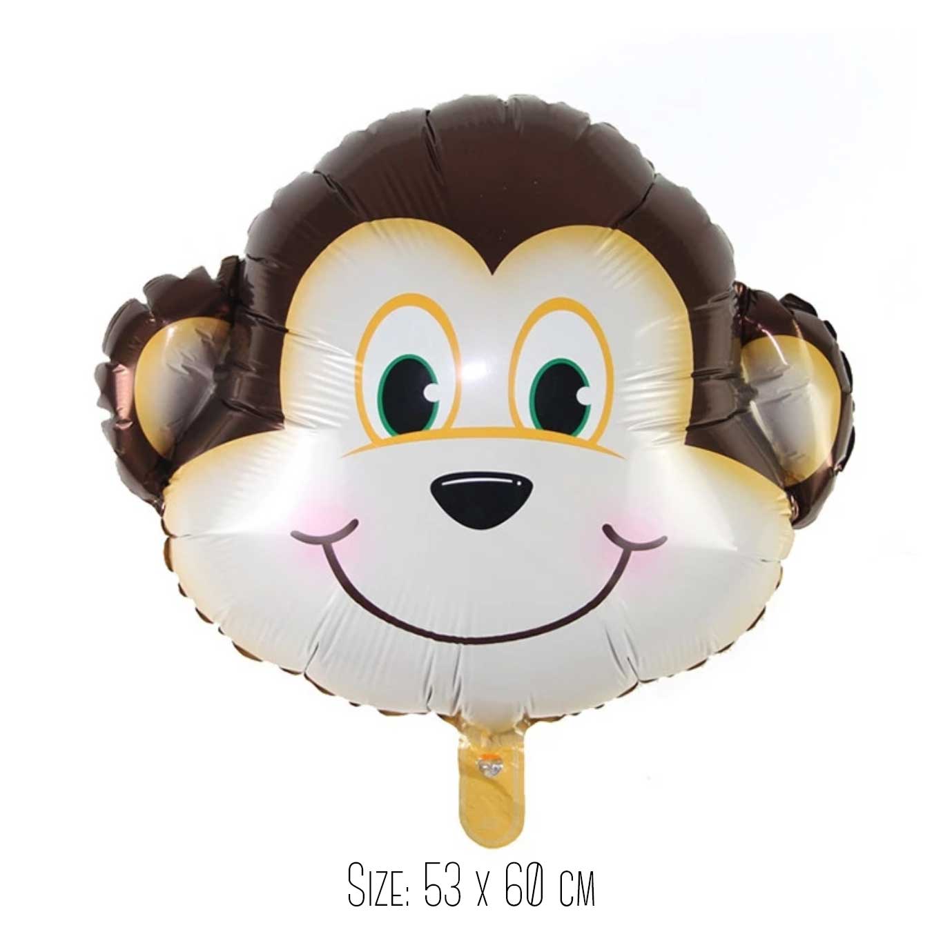 Balon foliowy w kształcie uśmiechniętej głowy Małpki o wymiarach 63x53 cm. Dostępny w 2 wariantach do wyboru: bez helu i napełniony helem.