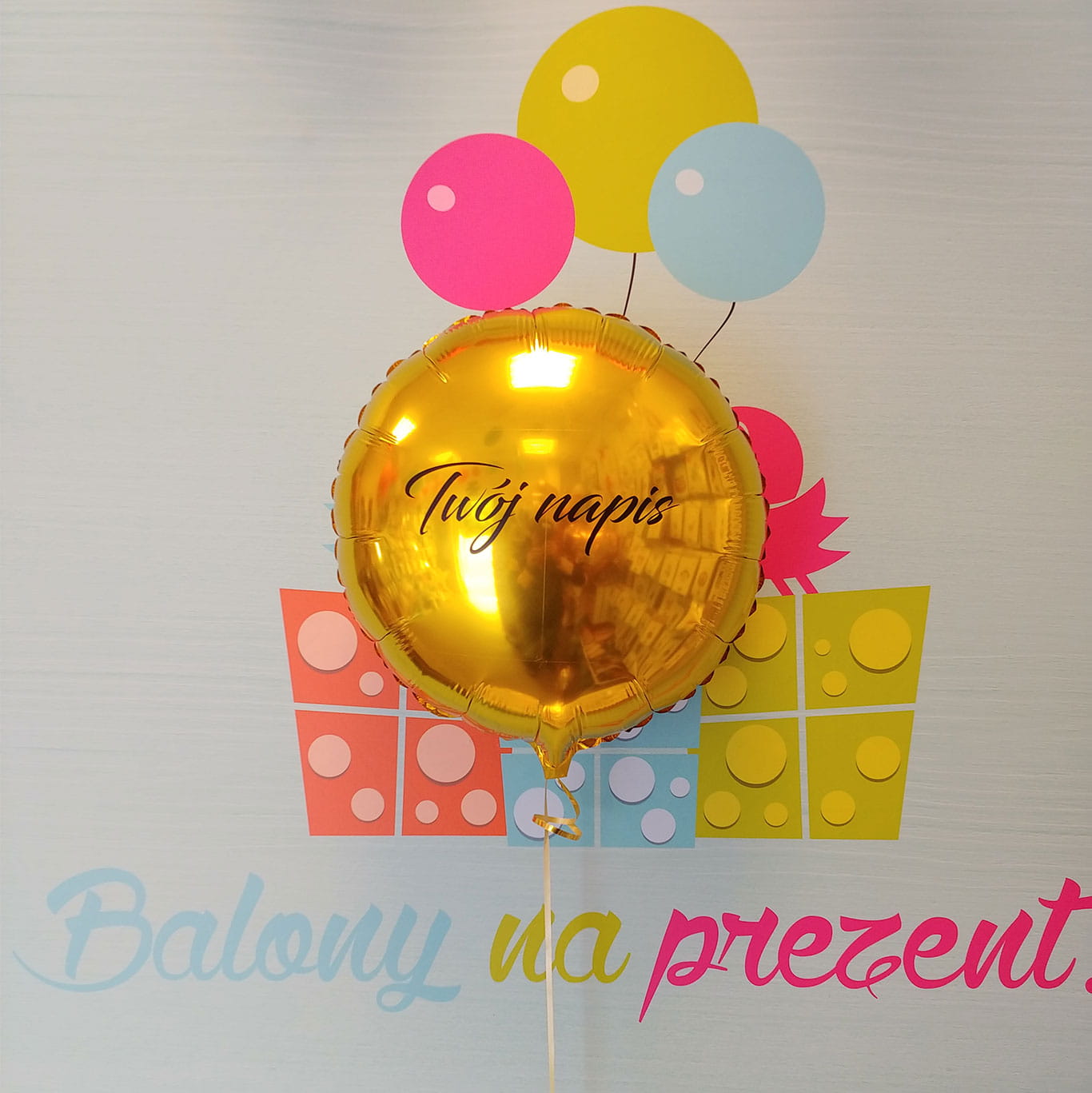 Wpisz tekst jaki mamy umieścić na balonie, wybierz kolor napisu i czcionkę: MASYWNĄ czy Ozdobną, a my przygotujemy go już na następny dzień.