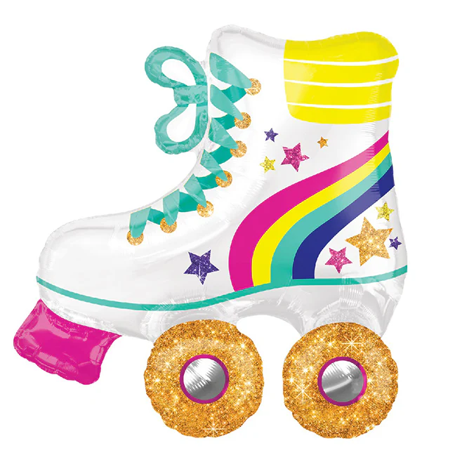 Piękny oryginalny balon foliowy w kształcie biało-kolorowych wrotek wykonany z lekkiej dobrej jakości folii firmy Anagram.