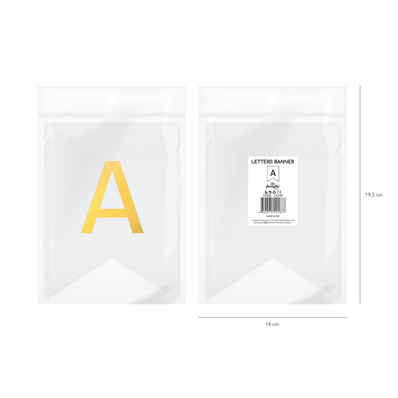 Biała flaga ze złotą literką "A" do stworzenia spersonalizowanego baneru tworzącego dowolny napis.