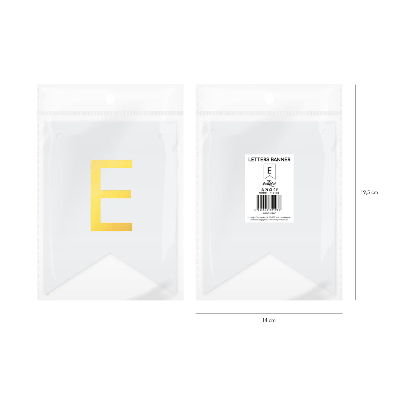 Biała flaga ze złotą literką "E" do stworzenia spersonalizowanego baneru tworzącego dowolny napis.