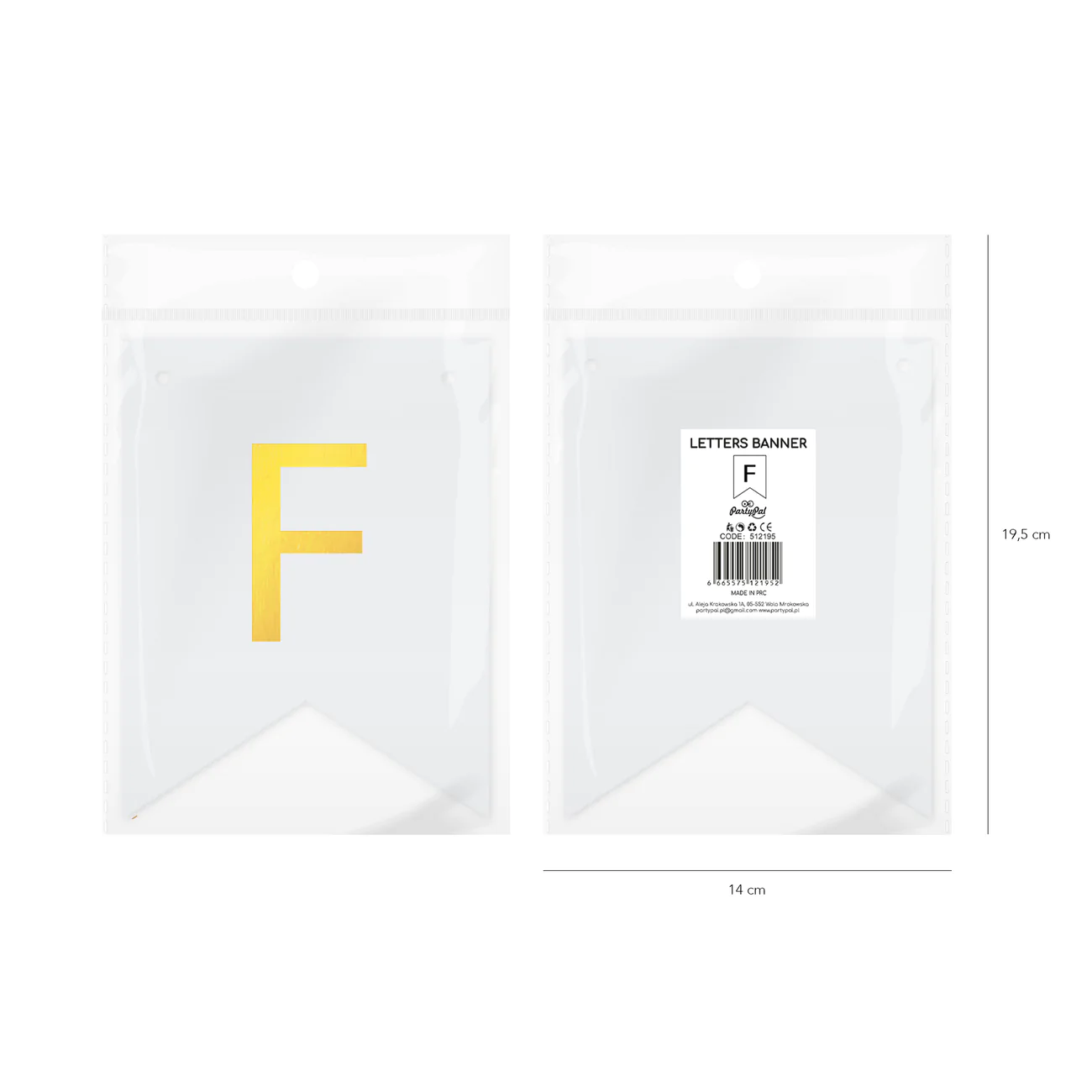 Biała flaga ze złotą literką "F" do stworzenia spersonalizowanego baneru tworzącego dowolny napis.