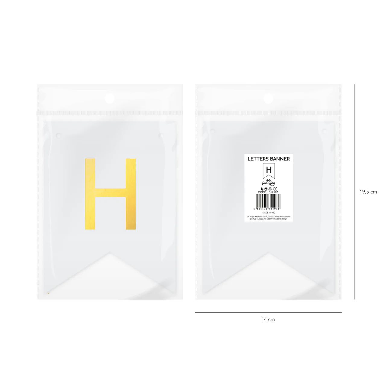 Biała flaga ze złotą literką "H" do stworzenia spersonalizowanego baneru tworzącego dowolny napis.