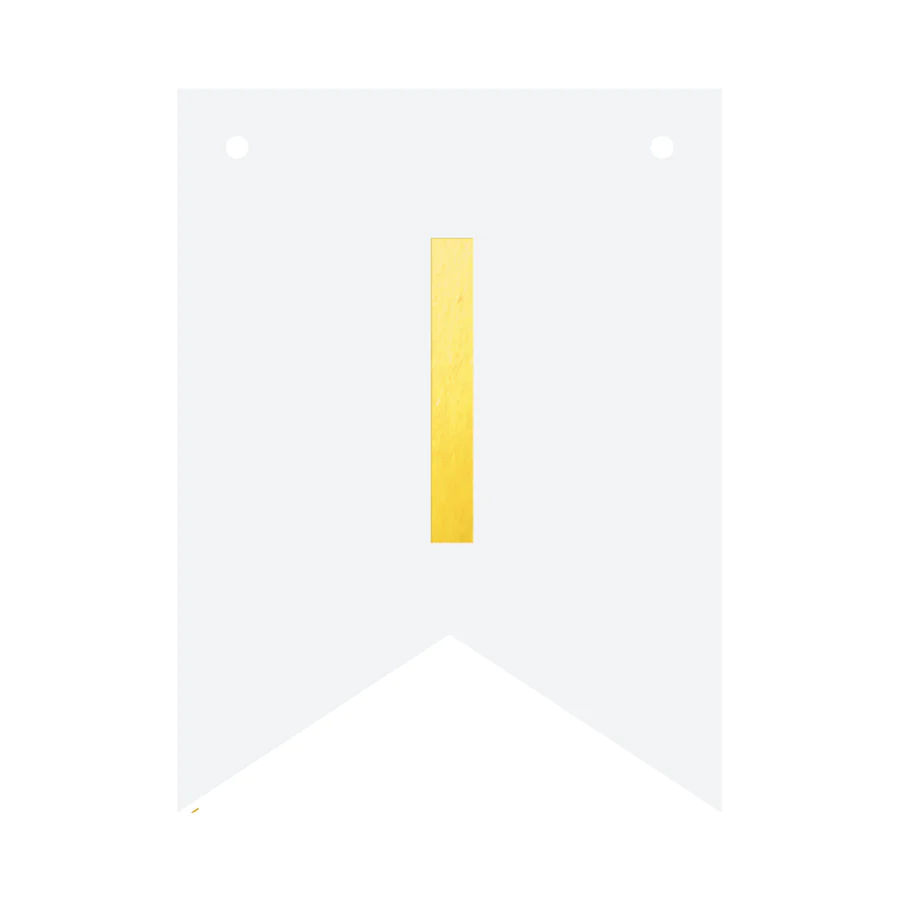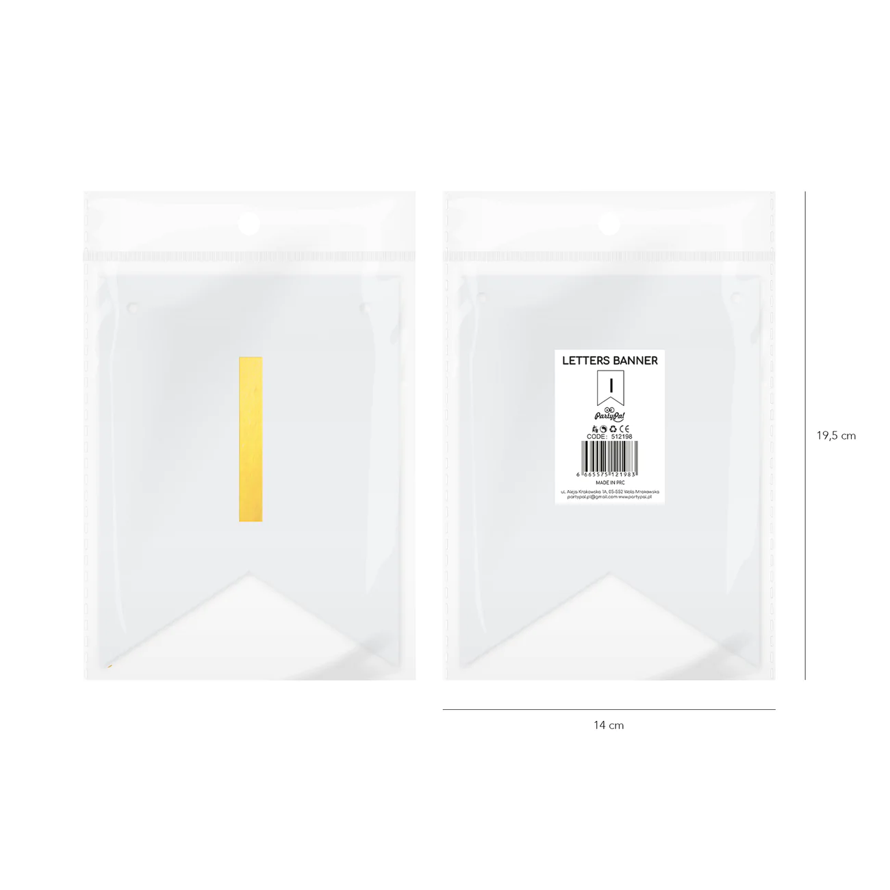 Biała flaga ze złotą literką "I" do stworzenia spersonalizowanego baneru tworzącego dowolny napis.