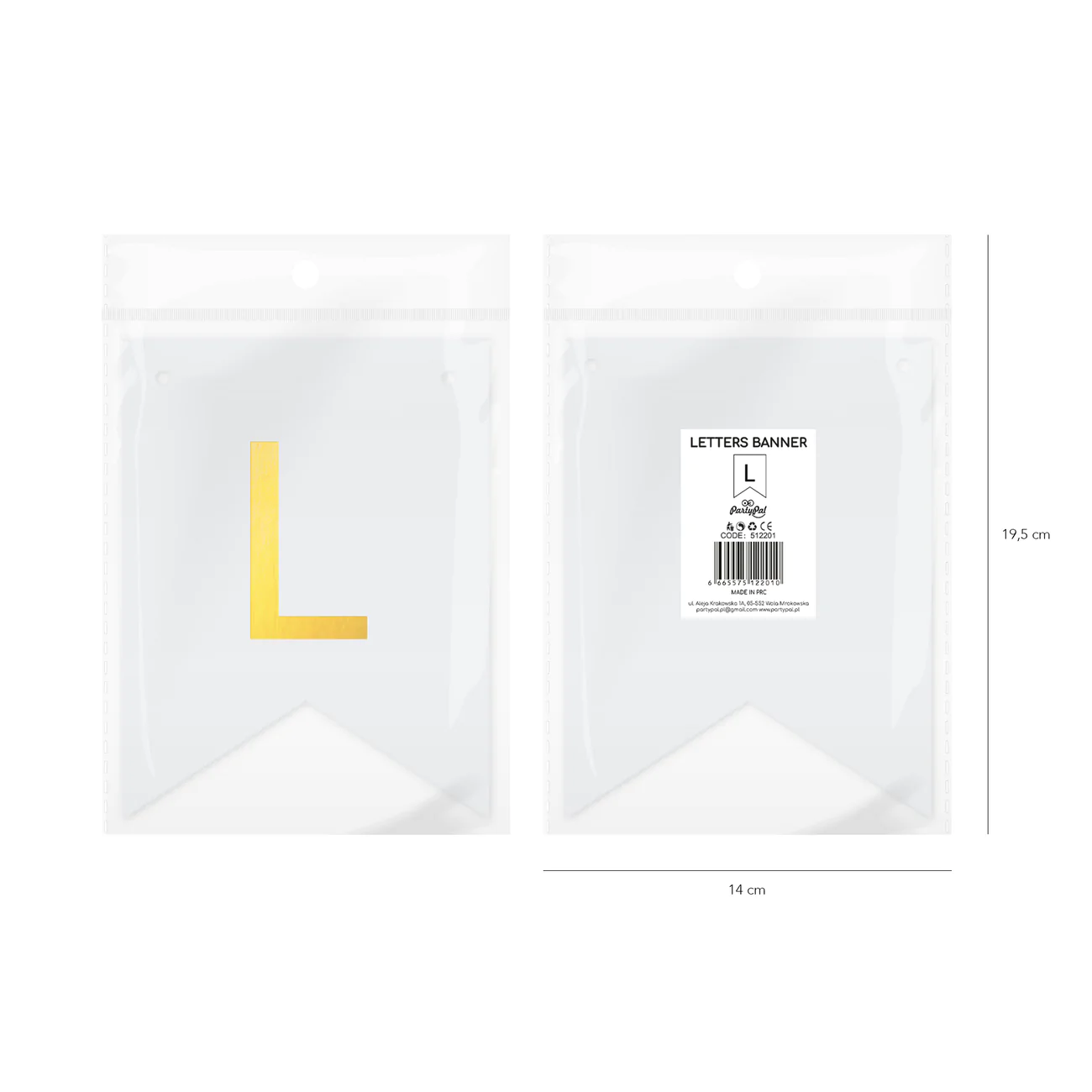 Biała flaga ze złotą literką "L" do stworzenia spersonalizowanego baneru tworzącego dowolny napis.