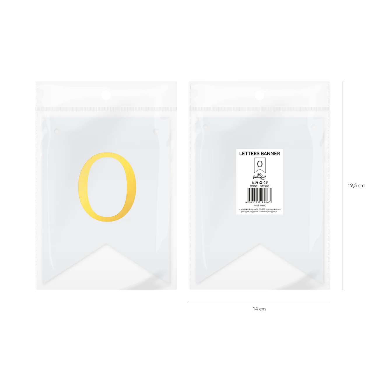 Biała flaga ze złotą literką "O" do stworzenia spersonalizowanego baneru tworzącego dowolny napis.