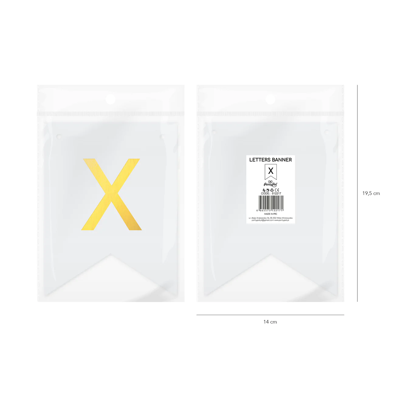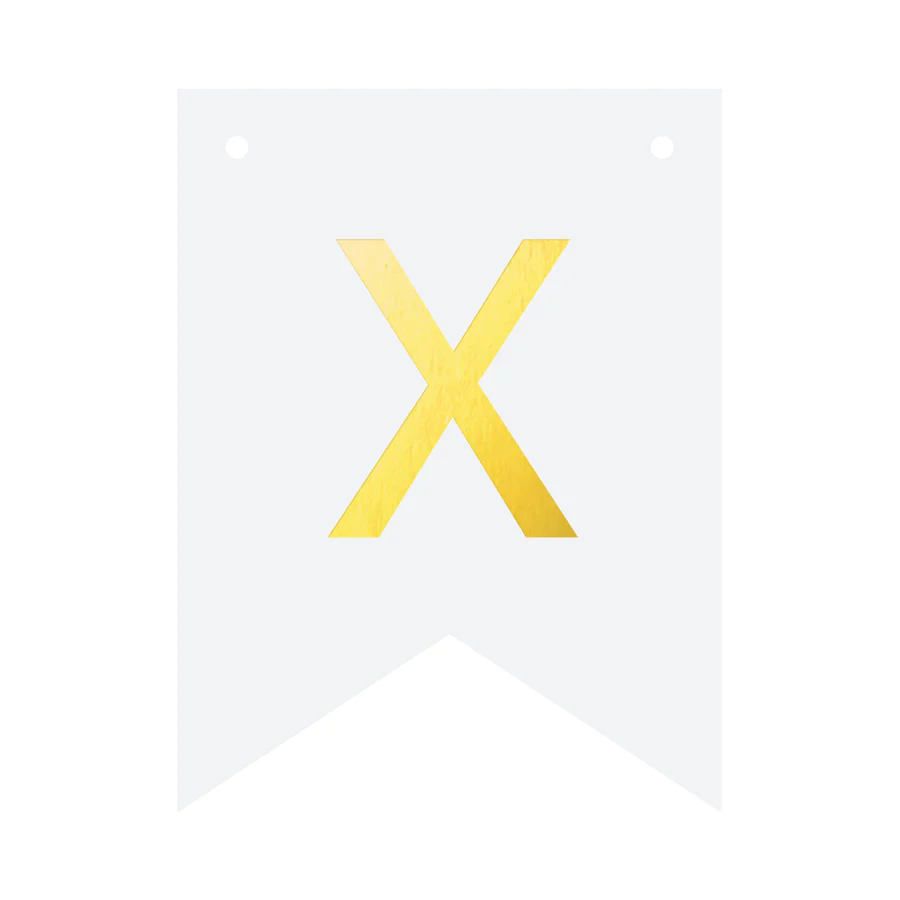 Biała flaga ze złotą literką "X" do stworzenia spersonalizowanego baneru tworzącego dowolny napis.