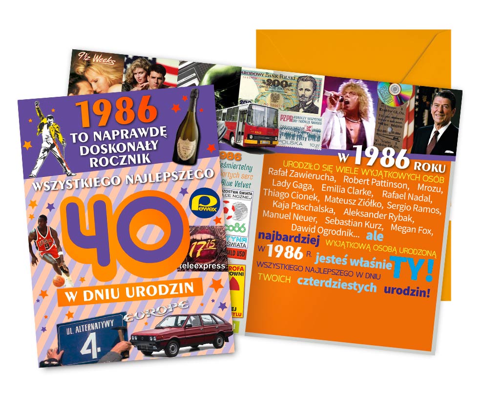 Kartka 40 Urodziny Wydarzenia z Rocznika 1986
