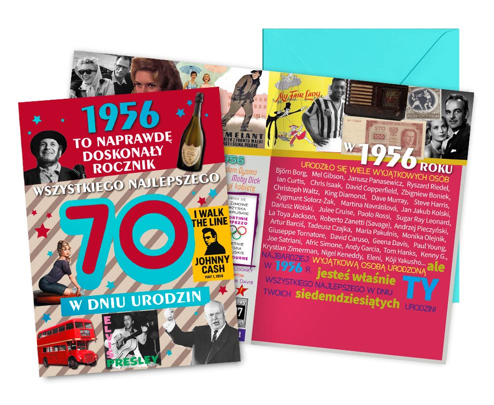 Kartka 70 Urodziny Wydarzenia z Rocznika 1956