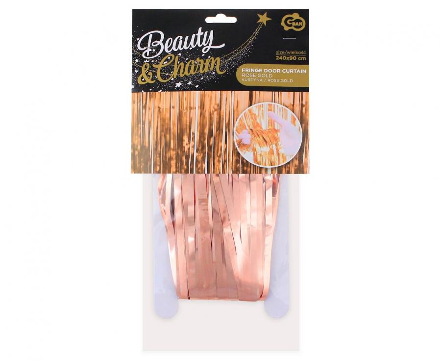 Opakowanie zawiera 1 szt. złoto-różowej kurtyny o wymiarach 90 cm szer. na 240 cm dł.