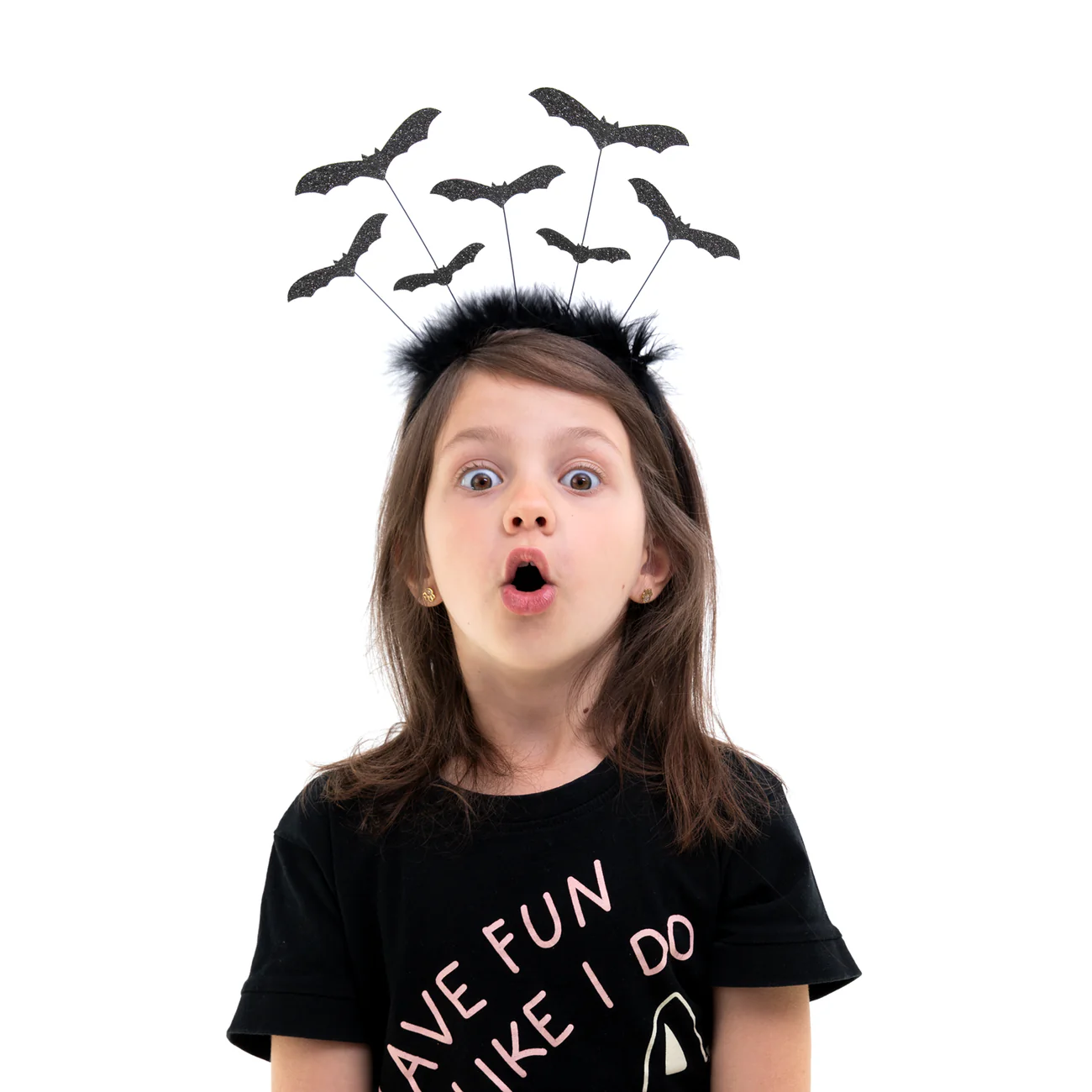 Efektowna opaska z siedmioma delikatnie błyszczącymi nietoperzami różnej wielkości.