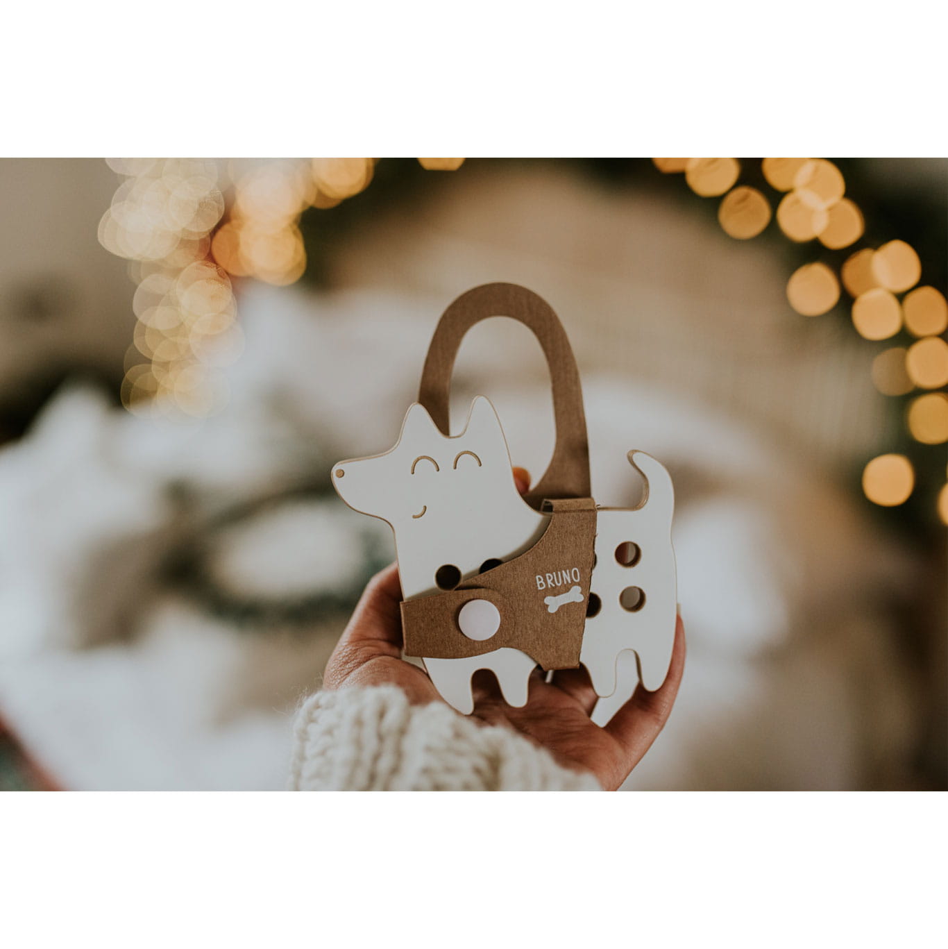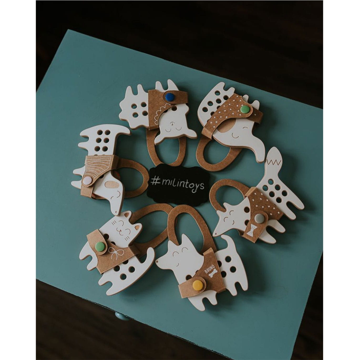 Drewniana zabawka z dołączoną sznurówką do przeplatania w kształcie pieska została stworzona w duchu metody Montessori.