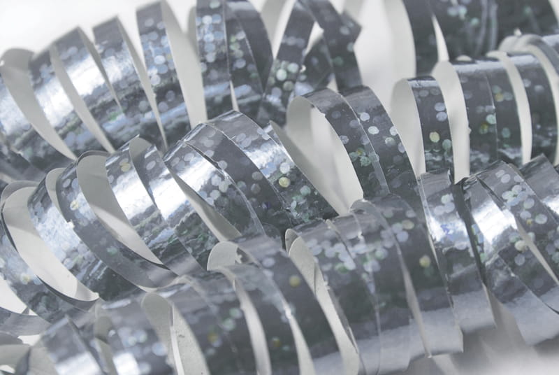 Serpentyny holograficzne w kolorze srebrnym o długości 3,8 metra.