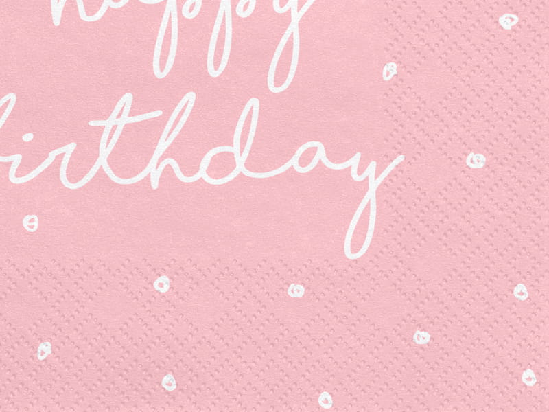 Serwetki papierowe w kolorze jasnoróżowym z napisem Happy Birthday.