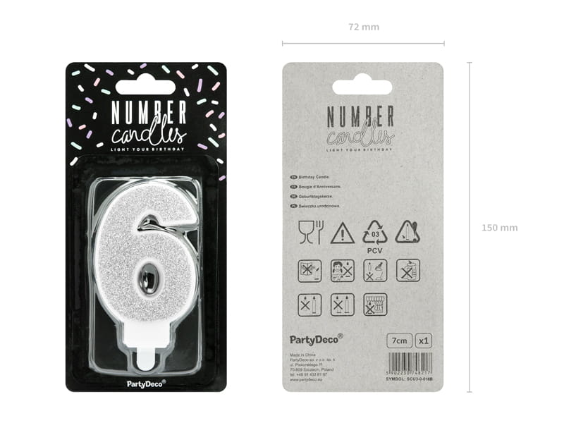 Świeczka Urodzinowa Cyfra 6 Srebrna