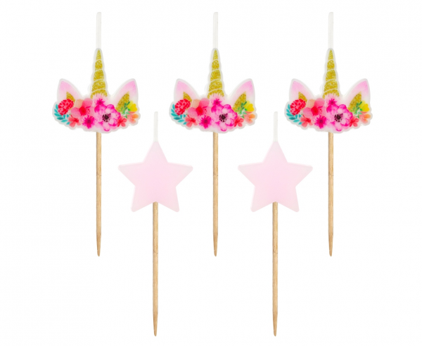 Świeczki na tort pikery w kształcie jednorożców i gwiazdek