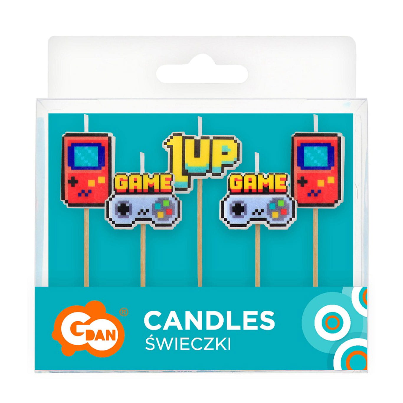 Prezentowane świeczki pikery w kształcie padów do gier, konsoli game boy oraz 1up zostały wykonana z wysokiej jakości kolorowej parafiny.