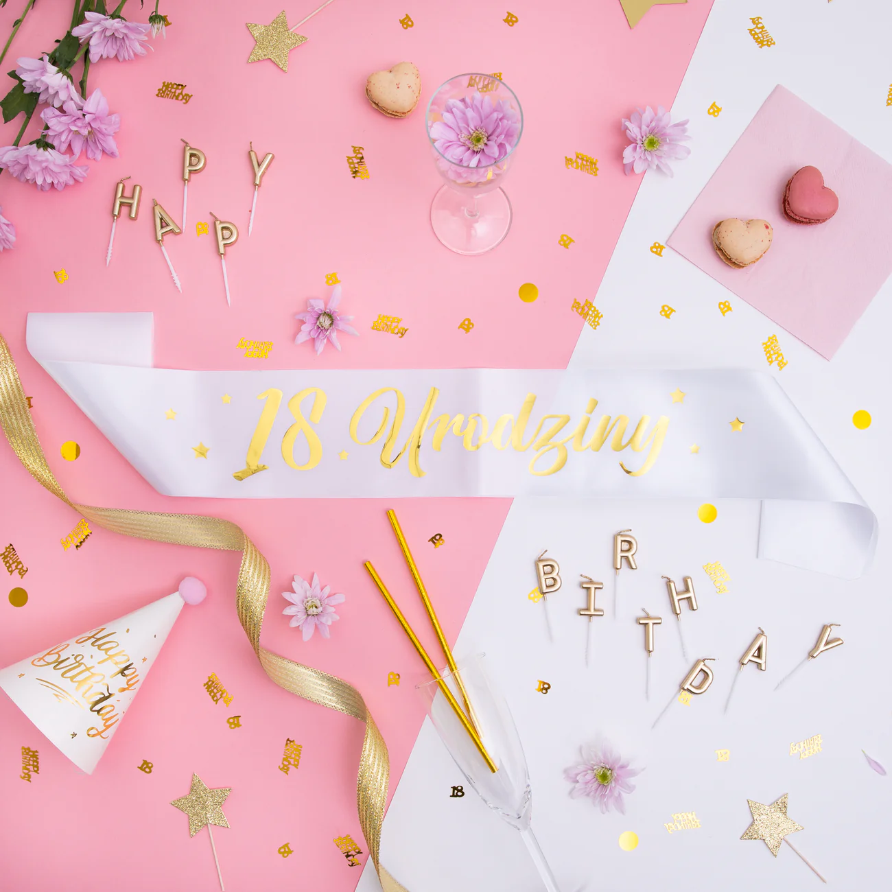 Szarfa 18 Urodziny Biało-Złota