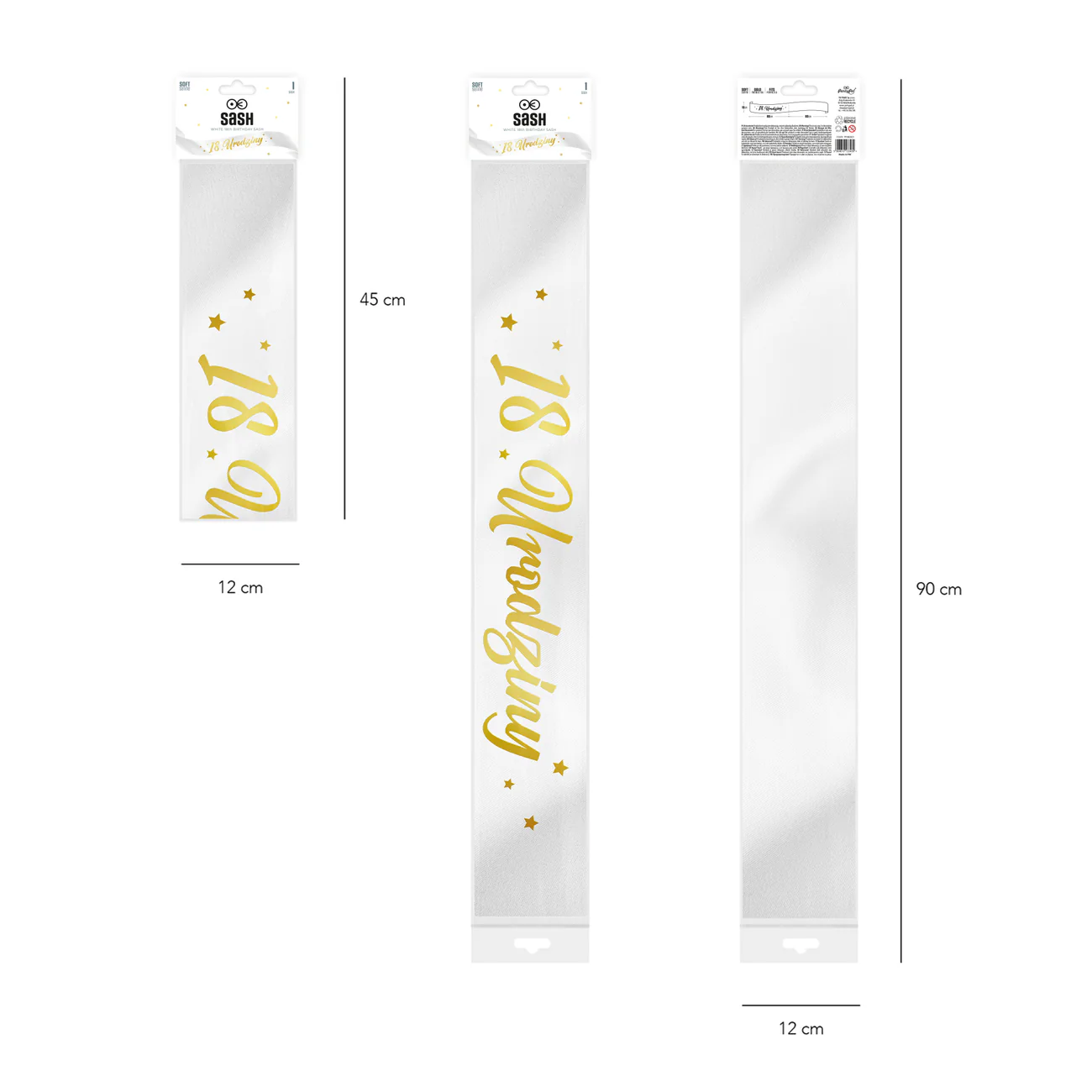 Urodzinowa szarfa w kolorze białym ze złotym napisem 18 Urodziny
