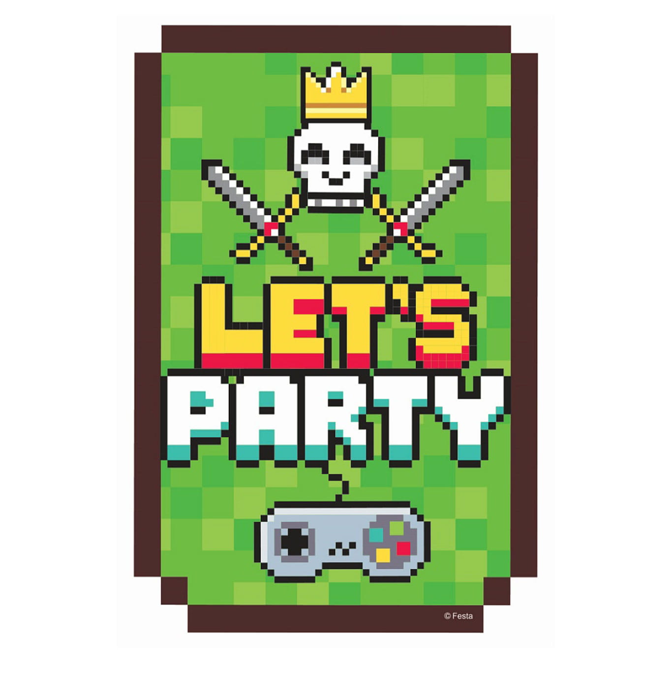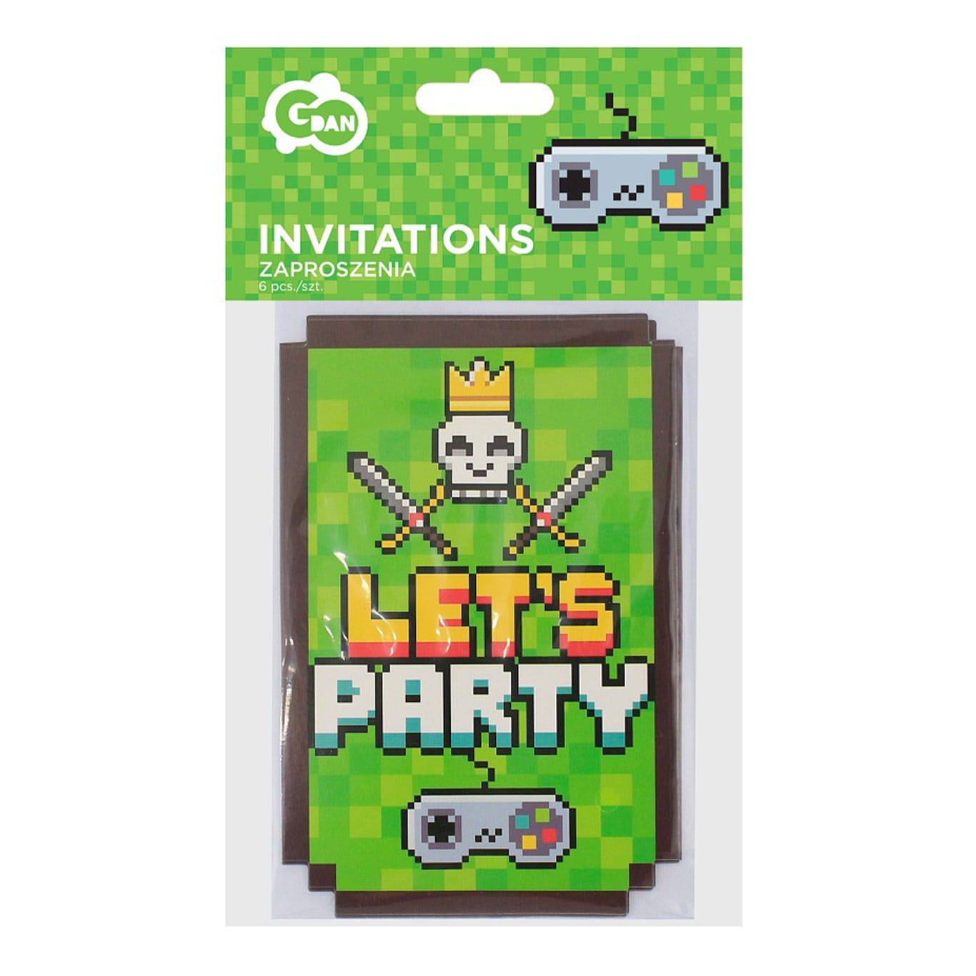 Zaproszenia urodzinowe lub na imprezę z napisem „Let’s Party” z kopertami. To również idealne zaproszenia na gaming party. W tym zestawie zaproszeń znajdziesz koperty, dlatego nie musisz już nic dokupywać. Wypełnij, zaadresuj, wyślij i gotowe!