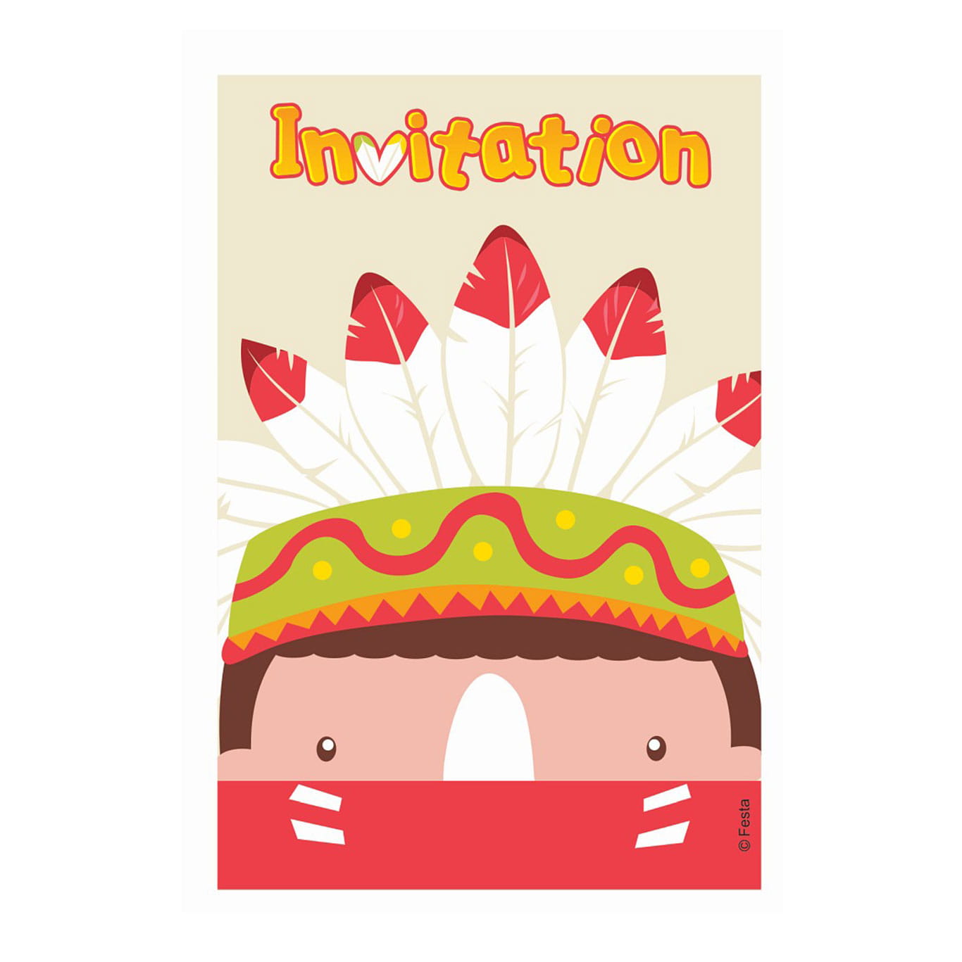 Zaproszenia pochodzą z kolekcji Indianin i idealnie pasują na każde przyjęcie każdego fana dzikiego zachodu i Indian.