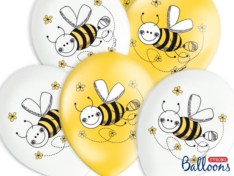 Balon Pszczółki, mix 14 cali - 35 cm. Duży piękny pełny balon z nadrukami w pszczółki, wzory i kolory losowe, o wielkości 14 cali - ok. 35 cm dostępny w wariancie bez helu lub napełniony helem.